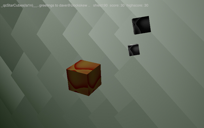 .games.ishizume.detail> .experimental..wardive & sniff_jazzbox (nintendo ds)wardive captures the wlans in the immediate area like a wardrive-tool and creates a game. it reads the names of the hotspots in your immediate area and turns them into enemies which try to take over your wardive-cristal. www.and-or.ch/wardive/ >![]() .qcStarCubesis a quartz composer game. it's a simple 3d shoot'em up.it was "coded" in the quartz composer of apple. download the programm qcStarCubes it is the second game on quartz composer after QCPong from dave@clockskew. more things about quartz composer things you can find here: http://www.quartzcompositions.com/